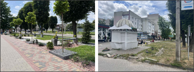 Тепер тут — простір із новими лавками, озелененням, декоративною засипкою та молодими деревами. Це не лише покращило вигляд центральної частини міста, а й створило зручне місце для відпочинку перехожих.