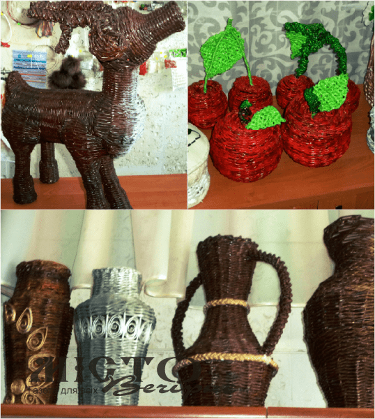 -Щоб виріб мав завершений вигляд, його можна проклеїти для міцності, а потім балончиком нанести аерозольну фарбу чи просто полакувати – тут все залежить від польоту фантазії митця, - пояснює Людмила Олександрівна. – Як каже моя дочка, деякі роботи можуть і не потребувати фарбування, оскільки фактура паперу сама по собі дуже цікава й утворює гарний малюнок. Підтвердженням цього є, наприклад, вироби із трубок глянцевих журналів, що і без фарби виглядає дуже яскраво й ефектно.