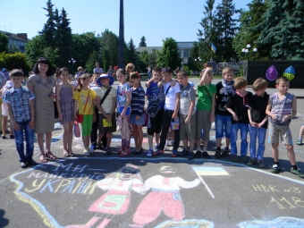 На площі Героїв надзвичайно гамірно. Дітвора сміється, метушиться, малює на асфальті. Учителі поруч, лагідно усміхаючись, спостерігають за процесом. Дитяча рука намагається твердо вивести: «Я за мир». У такій атмосфері проходить конкурс малюнків на асфальті «Україна у нас єдина».