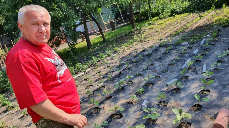Ми завітали до Сергія Дмитровича. Обійстя господаря є прикладом його принципу працювати на совість. Кам’яний паркан, верх стовпців якого прикрашають поставлені на кант куби з червоного граніту. Мозаїчна арка. А подвір’я, замість звичної тротуарної бруківки, викладене природними уламками різноманітного каменю. Помітно, що оздоблення, елементи середовища мають у кожному їх застосуванні виправданість і ненав’язливість. І хоч двір невеликий, але в його зонуванні відчувається рука хазяїна. Тут чітко розділено три функціональні зони: відпочинкова, творчо-виробнича і городня. У відпочинковій – причаїлися широка гойдалка-лавка, альтанка зі зрубу, чималий стіл із кам’яною стільницею, авторський камін-барбекю. А ще тут дихає прохолодою штучна водойма з насадженнями, радують око кілька хвойних дерев і черешня. Творчо-виробнича територія ізольована від сторонніх і нагадує прибране складське приміщення з акуратно складеними заготовками, обладнанням і пристосуванням для обробки каменю. Усі предмети мають сивий напил. Очевидно, що коли матеріал обробляється, то в повітрі добряче літає пил. Третьою є зона релаксу, як вважає Сергій. Клаптик землі він перетворив на зразкову агроділянку, на якій росте вся городина. Але найнесподіваніше, що господар особисто доглядає за рослинами, адже у будь-якій роботі завжди є доречним і необхідним перепочинок. От саме так майстер релаксує. В першу чергу – очима, адже споглядання зеленого кольору, за спостереженнями медиків, допомагає відновленню зору. Ще в третій зоні знаходиться теплиця, в якій рясно на шпалерах починають цвісти огірки. Баклажани, кавуни, дині й усяка городина рівними рядками без жодної зілиночки утворюють чіткий килим на землі. Крім задоволення, таке заняття дає можливість отримувати з власної ділянки екологічно чисту вітамінну продукцію, усе свіже і соковите. Замолоду Сергій Дмитрович навіть не міг припустити, що буде займатися такими справами, бо мав великі мрії стати забезпеченим. Городництво – не у списку занять, які могли до цього привести.