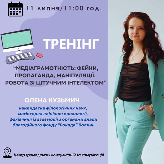 У Центрі громадських консультацій та комунікацій Локачинської громади відбудеться на тренінг «Медіаграмотність: фейки, пропаганда, маніпуляція. Робота зі штучним інтелектом».