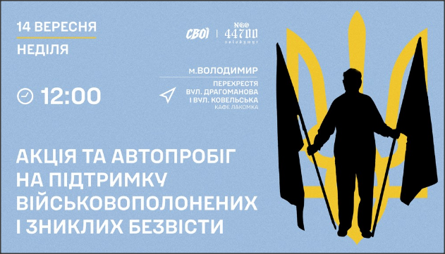 14-го вересня у Володимирі відбудуться автопробіг та мирна акція на підтримку військовополонених та зниклих безвісти.