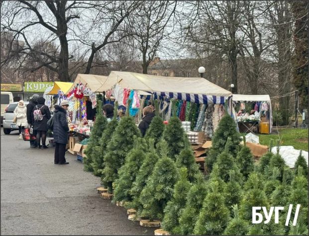 Також продавці пропонують різноманітні прикраси, дощик, гірлянди та святкові композиції. Мешканці уже зупиняються, щоб придбати перші дрібнички до свят і придивитися до майбутньої ялинки.