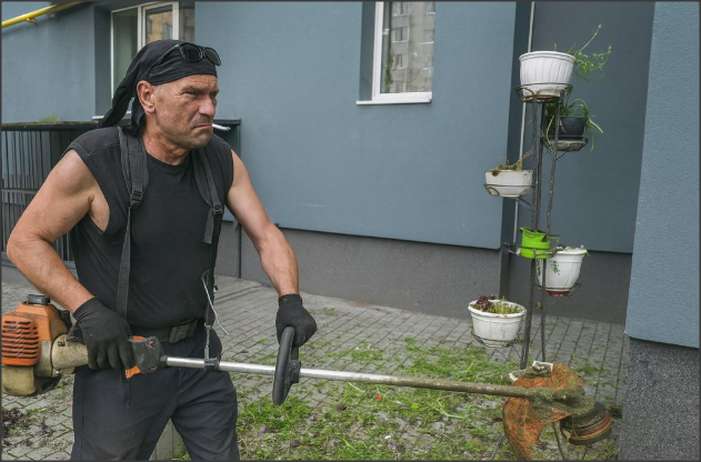 Відомо, що герой цієї історії працює на місцевому комунальному підприємстві та має доступ до мотокосарки та паливно-мастильних матеріалів. І, як бачимо, не соромиться використовувати це “добро” навіть за межами робочого часу — для особистих розбірок із флорою та мешканцями.