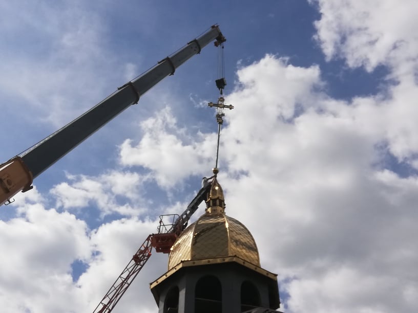 Допомогли встановити купол працівники КП “Полігон”. Також підприємство надало парафіянам храму автовишку.
