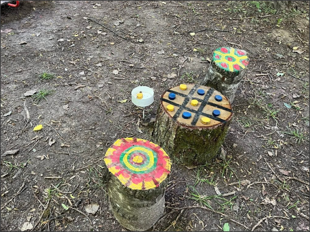 А тепер це місце стало ще кращим, а відпочинок тут ще цікавішим. Адже на звичайних пеньках намалювали відому розвиваючу гру «Хрестики-нулики». Також в цій зоні відпочинку можна зіграти й інші активні ігри, зокрема баскетбол і волейбол.