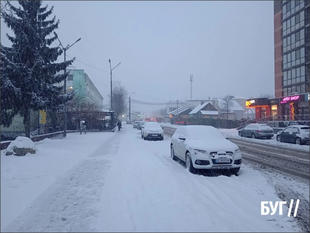 Ранок 7-го січня у Володимирі розпочався з сильного снігопаду. Місто замітає снігом, однак комунальні служби з самого ранку працюють над розчищенням доріг і тротуарів.