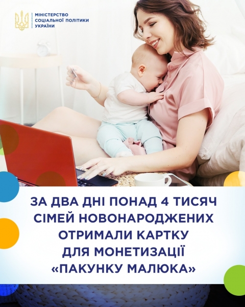 - Із 1 вересня запрацював новий механізм отримання грошової компенсації одноразової допомоги «пакунок малюка». Тепер таку допомогу можуть отримати всі громадяни України, іноземці й особи без громадянства, у яких народилася дитина, вони є справжніми її батьками і проживають на території України. Також ця допомога може виплачуватися і патронатним вихователям, прийомним батькам, батькам-вихователям, опікунам (за умови, що батьки відмовилися від новонародженої дитини у пологовому будинку, перинатальному чи неонатальному центрах). Отримані кошти батьки, чи особи, що їх заміняють, можуть на власний розсуд, залежно від потреб дитини, витрачати на речі чи предмети гігієни. Маючи право вибору, можна купити справді необхідні речі для маляти, при придбанні можливе максимальне врахування індивідуальних особливостей дитини (зріст, вага, алергенність та ін.).